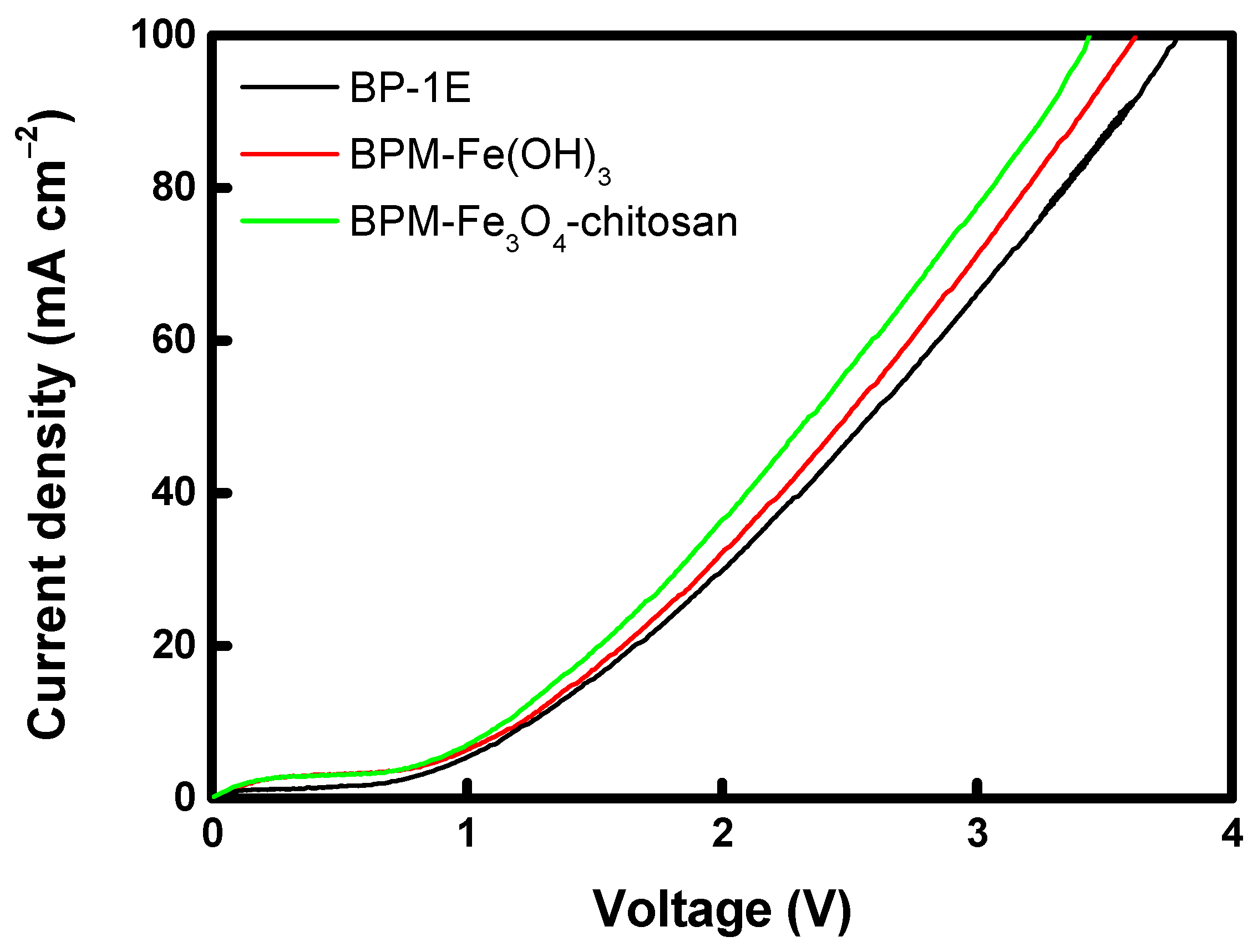 2.6. Water-Splitting Performance Evaluation for BPMs