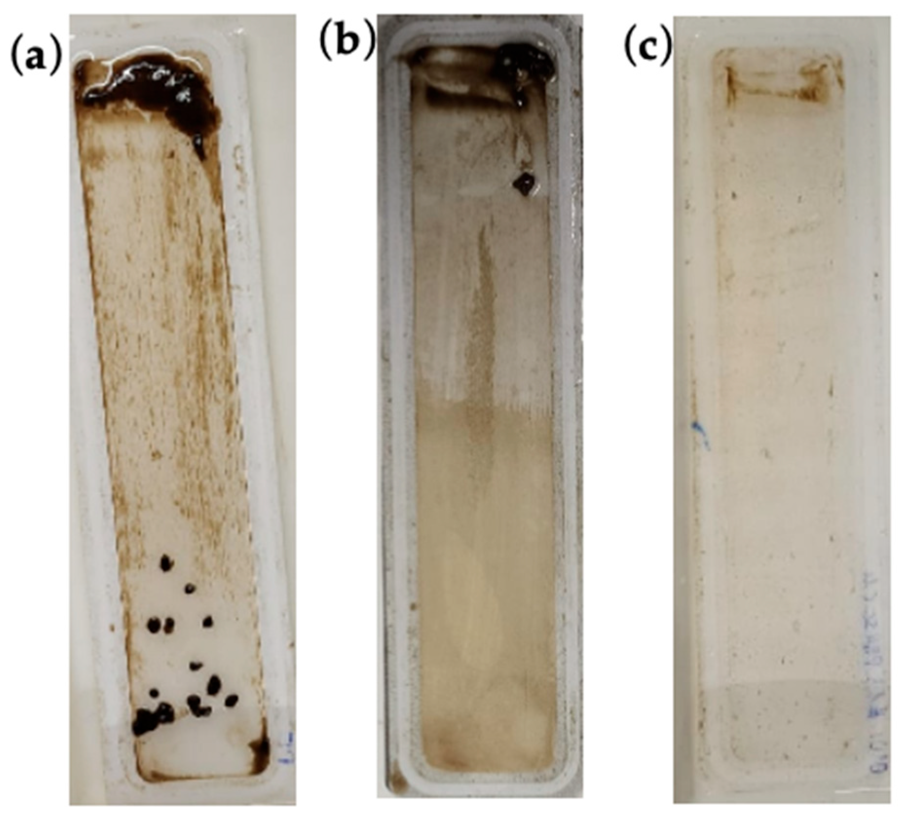 | Fouled Membrane Surface | Post Flux-Step Test with Low-Strength DMW | Post Constant Flux Test with High-Strength OMW |