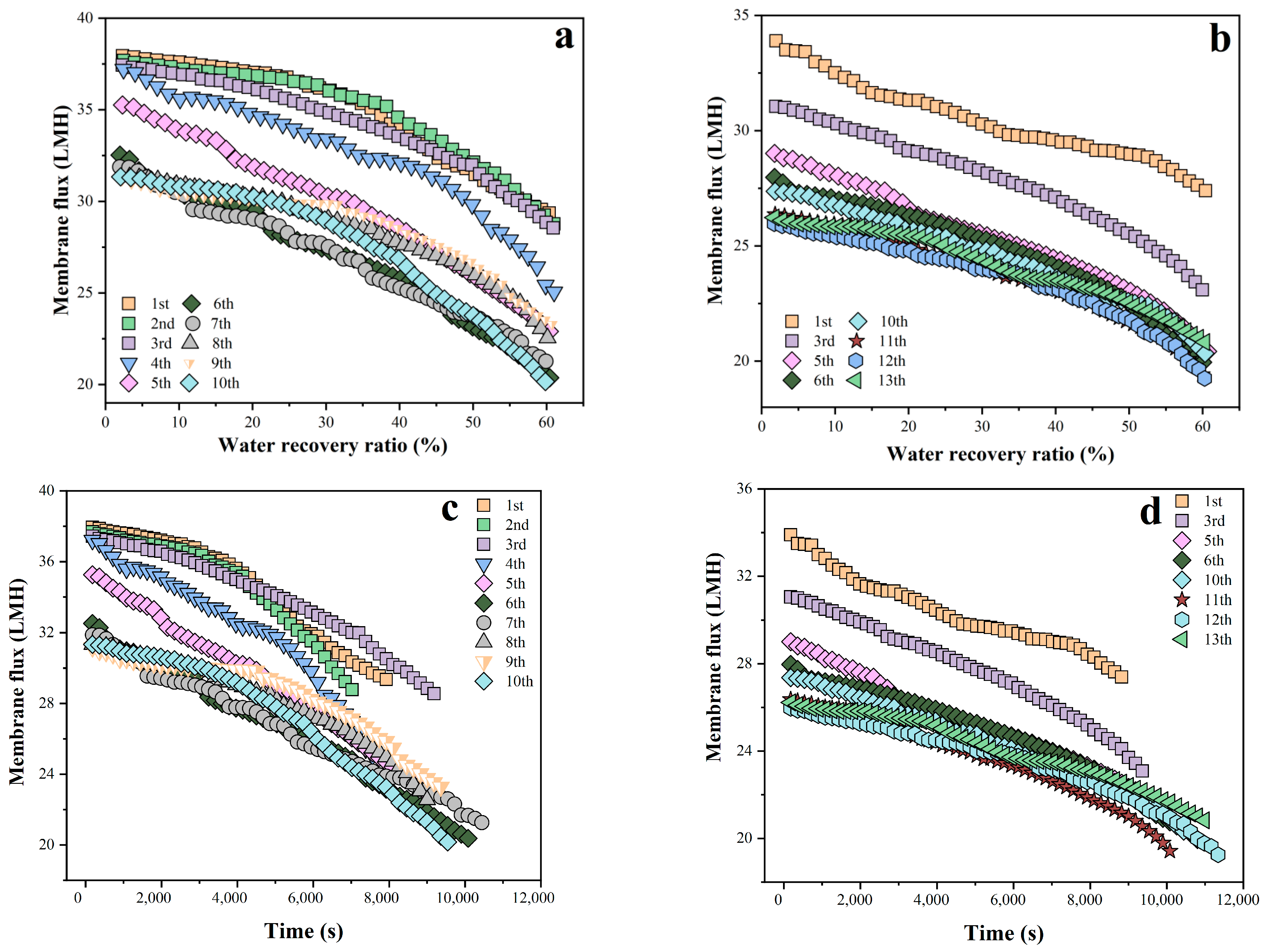 | Average flux (LMH) | 34.52 | 27.13 | 28.31 | 24.36 | 25.11 | 24.90 | 26.77 | 25.92 |