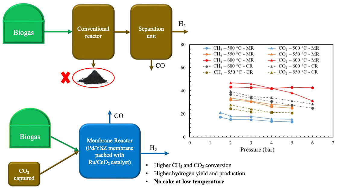 Investigation of Biogas Dry Reforming over Ru/CeO2 Catalysts and Pd/YSZ Membrane Reactor