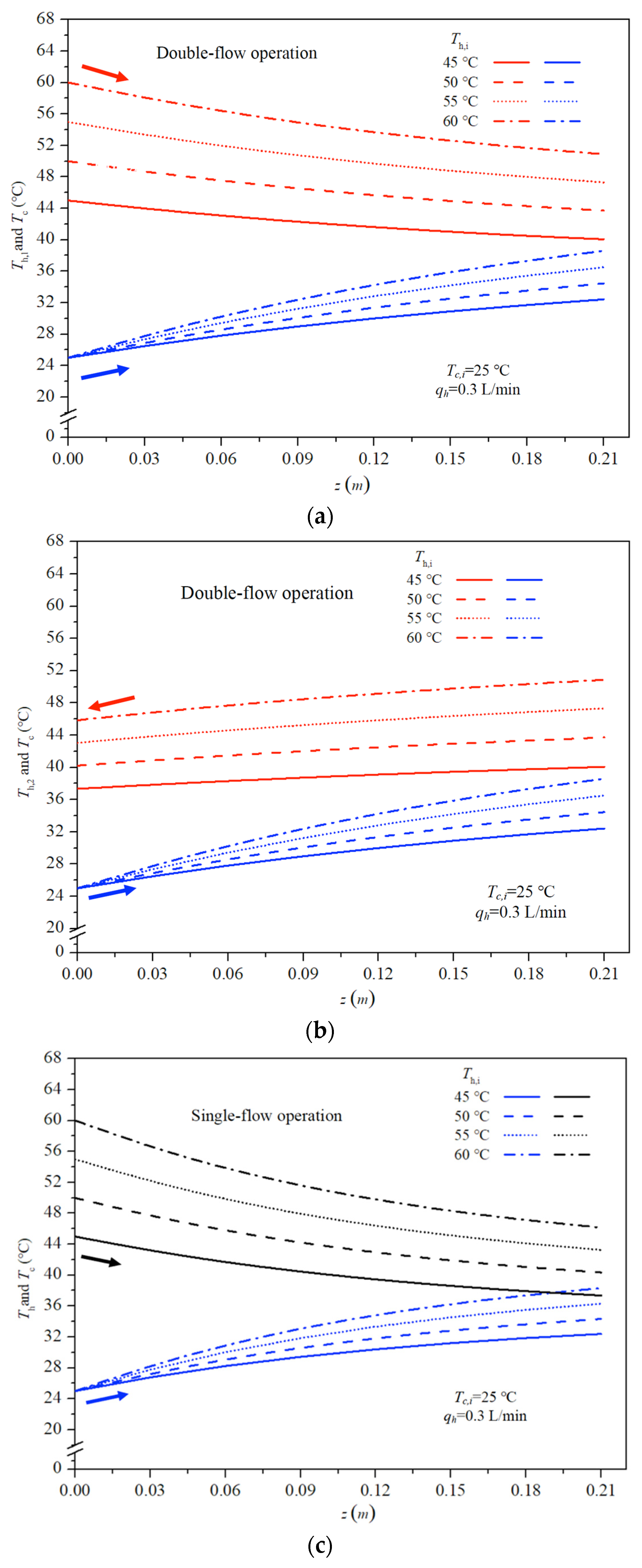 3.4. Temperature Distributions in Single-Flow Operations