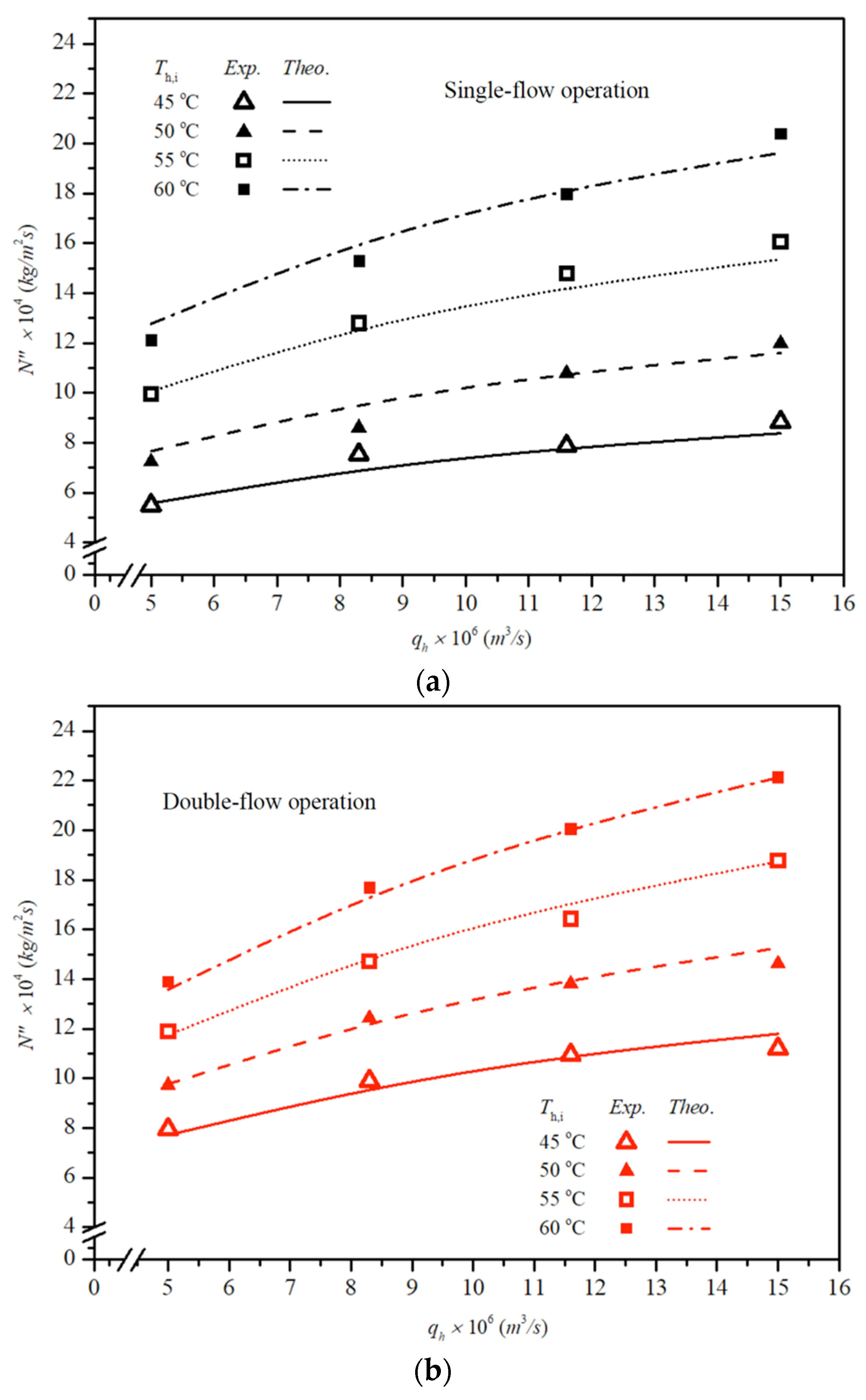 (°C) | Single-Flow Operations | Double-Flow Operations | ||||||