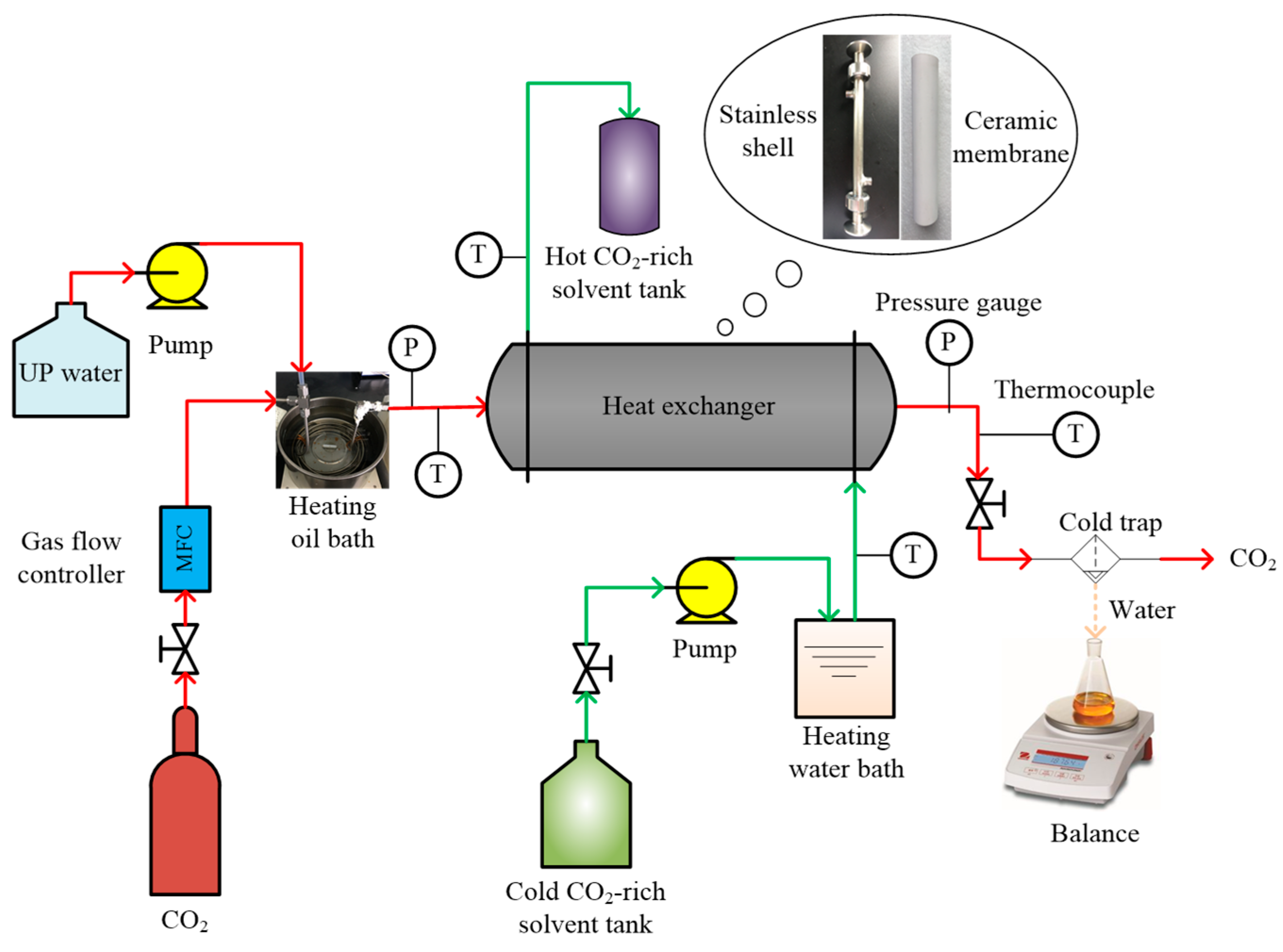 The heat recovery from stripped gas using a ceramic membrane heat exchanger (CMHE) is governed by a strongly coupled transport process involving vapor condensation, water/vapor migration through the ceramic membrane, and heat conduction across the ceramic membrane [