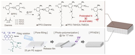 - Koronka, D.; Mahmoud, A.M.A.; Miyatake, K. Effect of crosslinking on the properties of partially fluorinated anion exchange membranes. J. Polym. Sci. Part A Polym. Chem. 2019, 57, 1059–1069. [Google Scholar] [CrossRef]