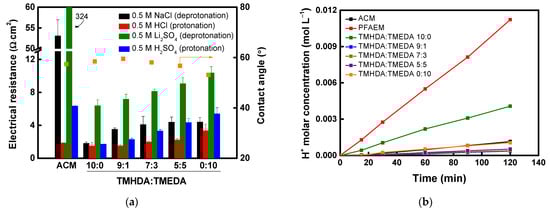 - Cong, M.-Y.; Jia, Y.-X.; Wang, H.; Wang, M. Preparation of acid block anion exchange membrane with quaternary ammonium groups by homogeneous amination for electrodialysis-based acid enrichment. Sep. Purif. Technol. 2020, 238, 116396–116406. [Google Scholar] [CrossRef]