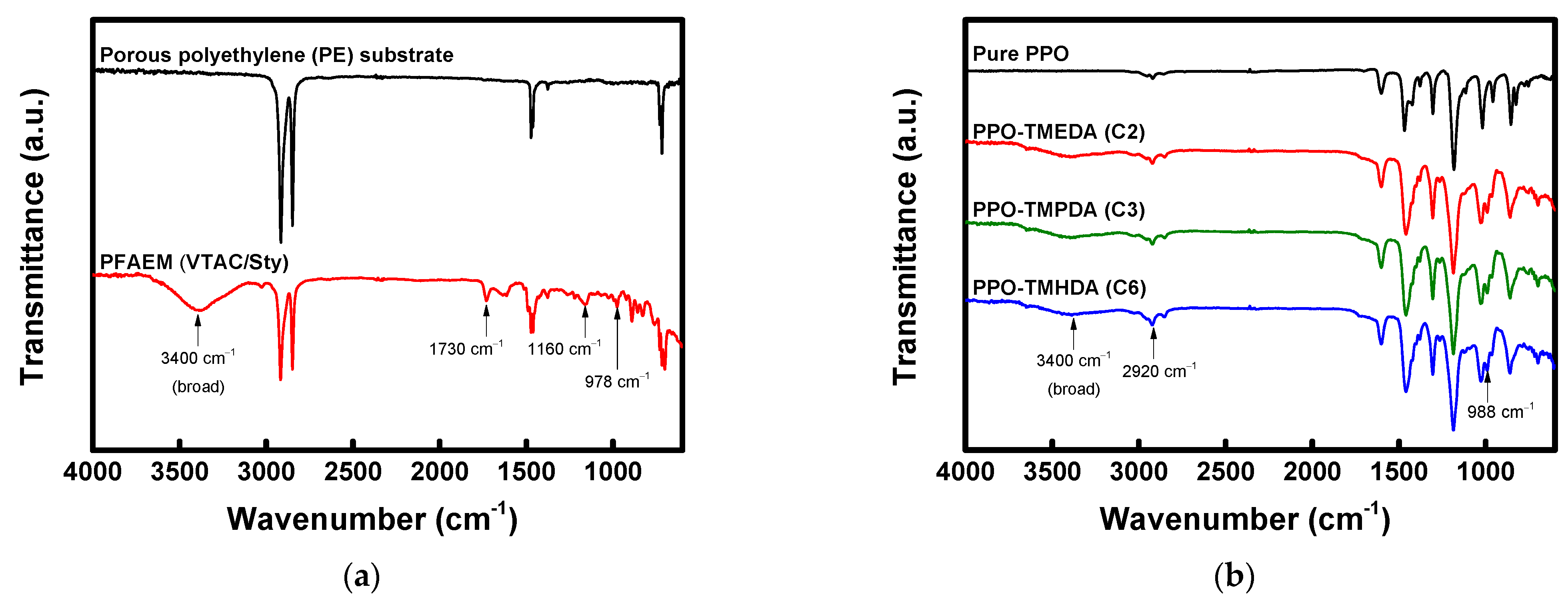 - Zhang, S.; Li, C.; Xie, X.; Zhang, F. Novel cross-linked anion exchange membranes with diamines as ionic exchange functional groups and crosslinking groups. Int. J. Hydrogen Energy 2014, 39, 13718–13724. [Google Scholar] [CrossRef]