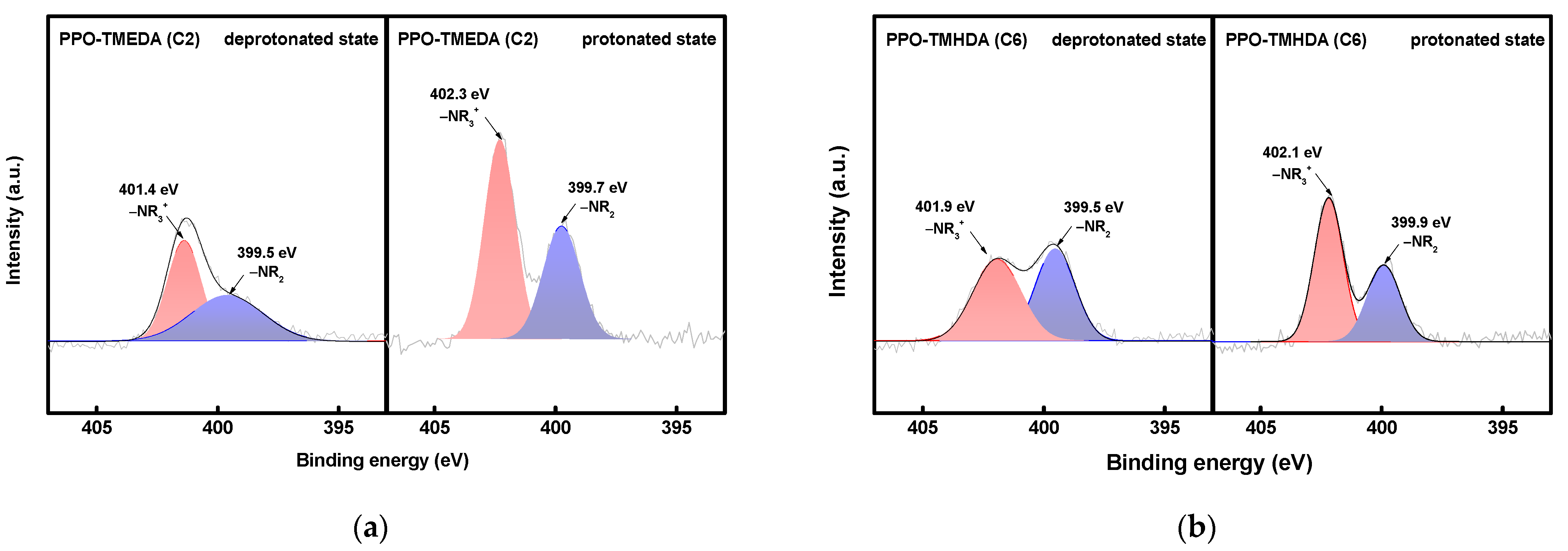 - Upadhyay, P.; Mishra, S.; Suhag, S.; Kulshrestha, V. Influence of quaternary ammonium moieties on poly(phenylene oxide) based anion exchange membranes for acid reclamation by diffusion dialysis. Next Mater. 2025, 9, 100937–100945. [Google Scholar] [CrossRef]