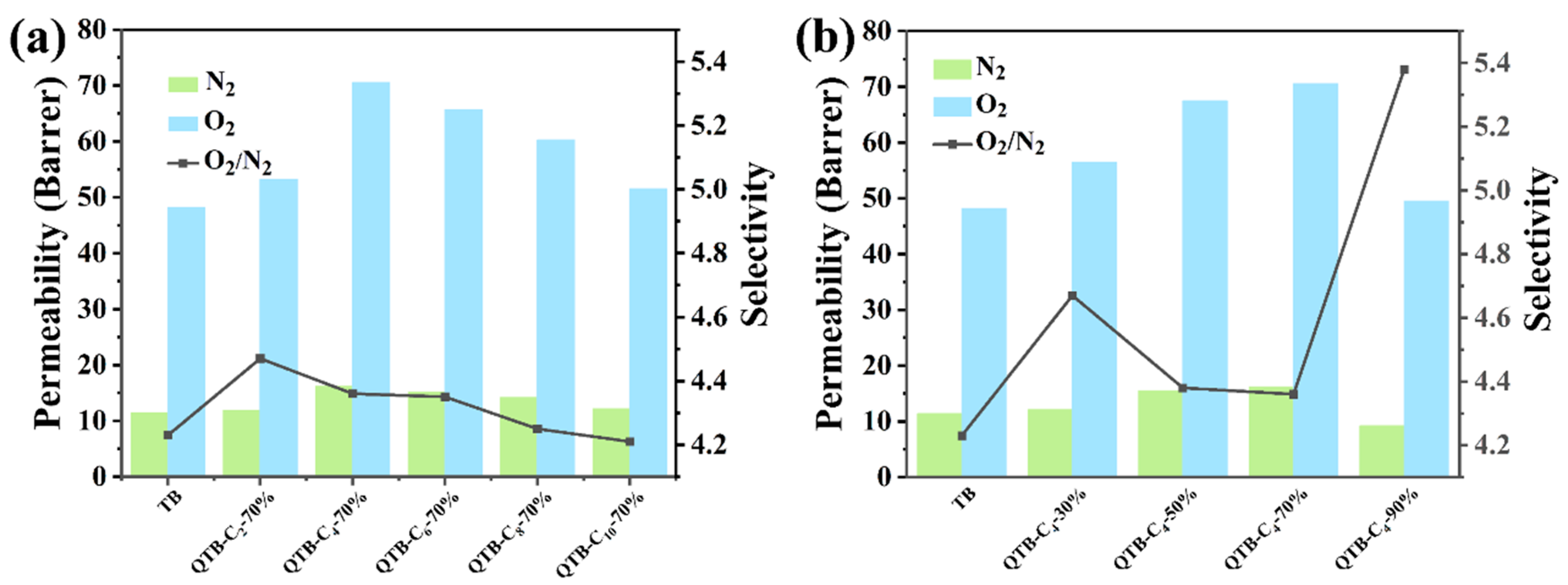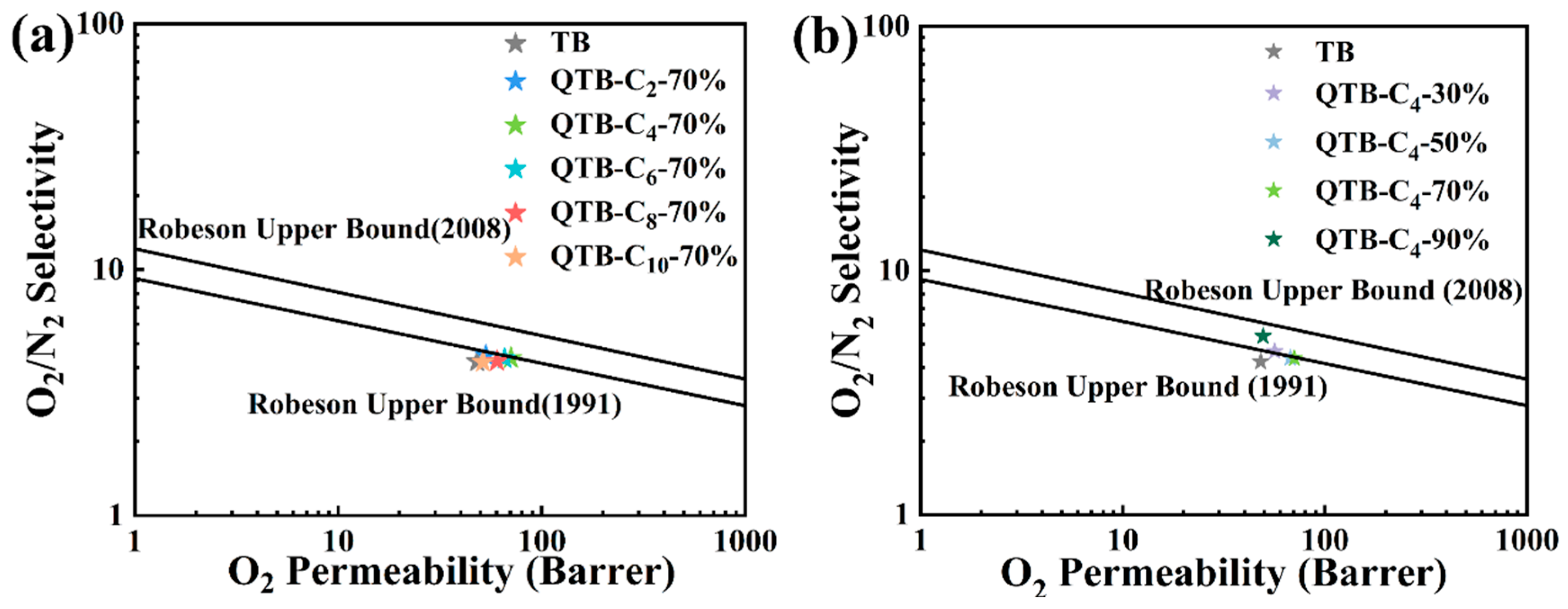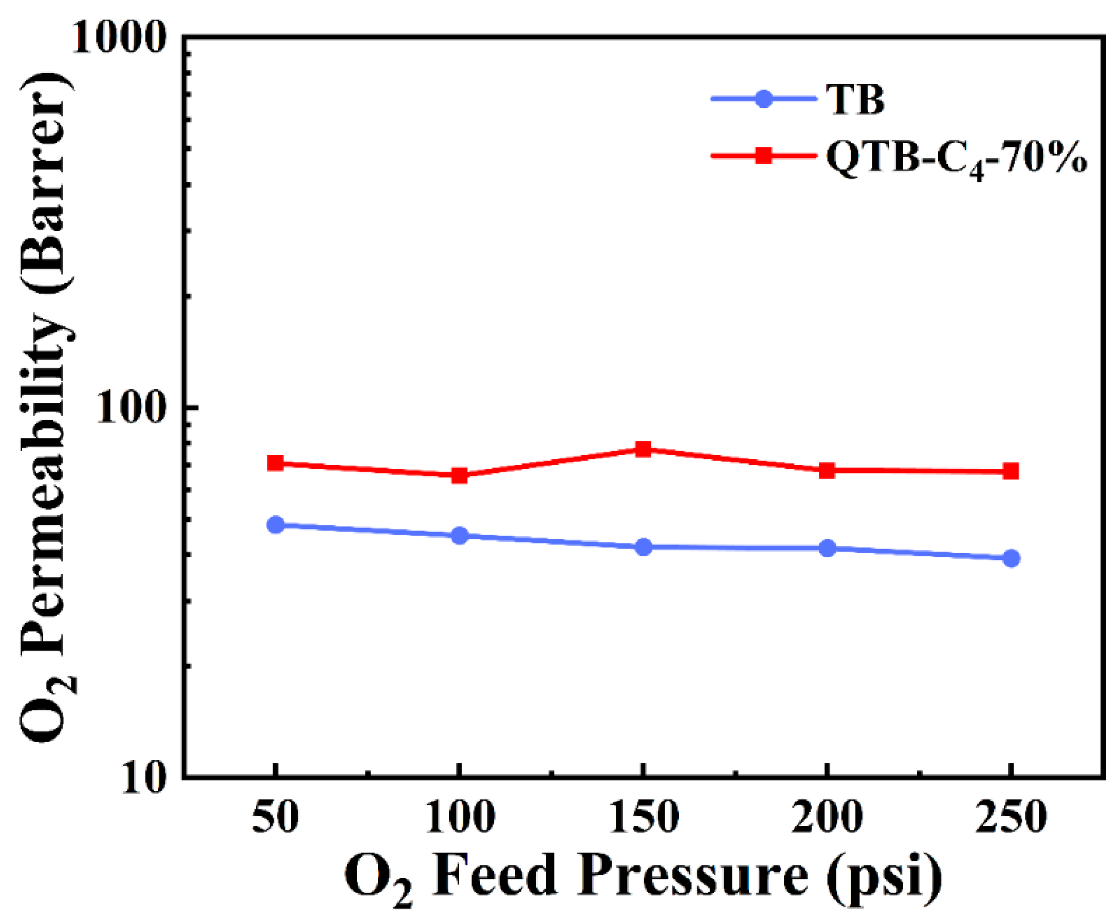 3.5. Gas Permeation Performance of TB and QTB Membranes