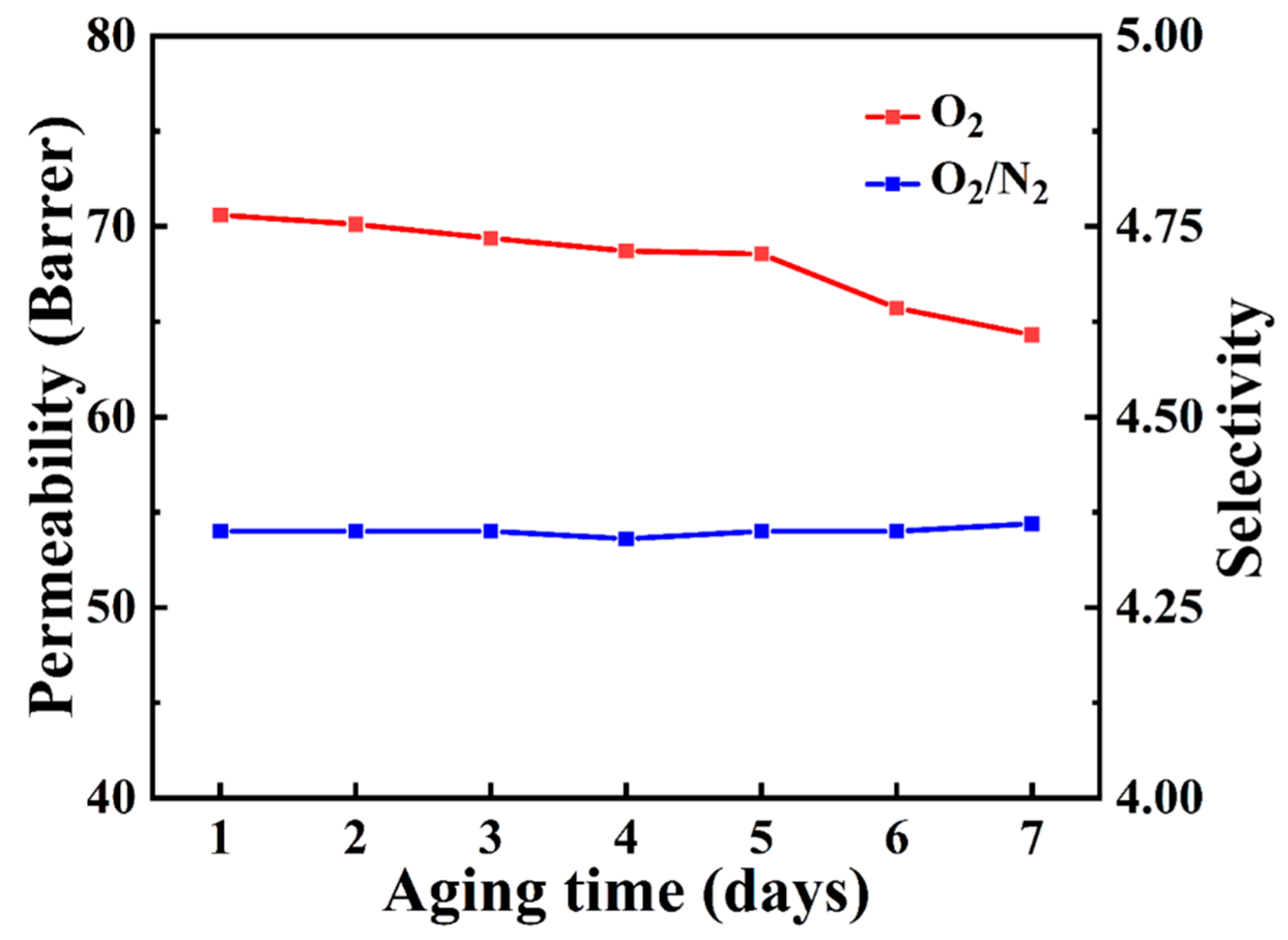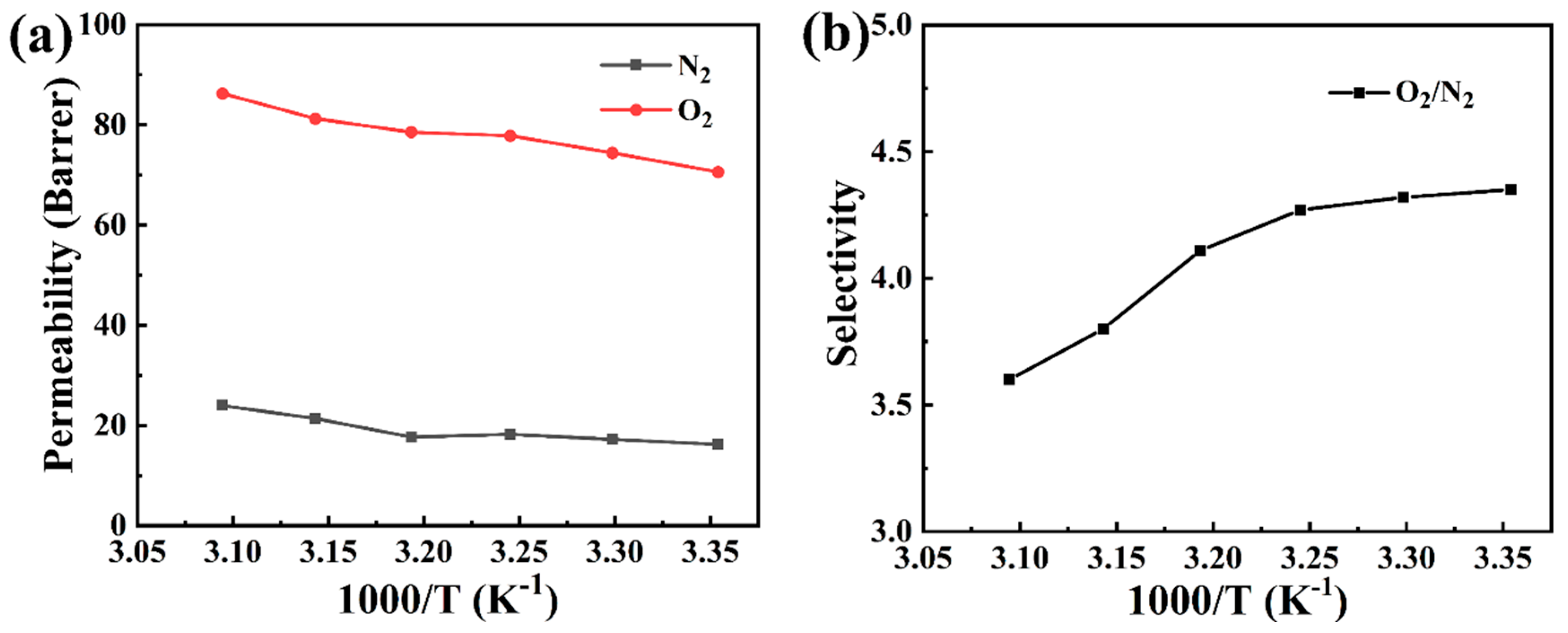 - Song, Y.-x.; Tang, A.; Zhang, J.-l.; Dong, J.; Zhao, X.; Zhang, Q.-h. Preparation of Thermally Rearranged Poly(benzoxazole-co-imide) Membranes Containing Tröger’s Base Structure and Their Gas Separation Performances. Acta Polym. Sin. 2025, 56, 1358–1368. [Google Scholar] [CrossRef]