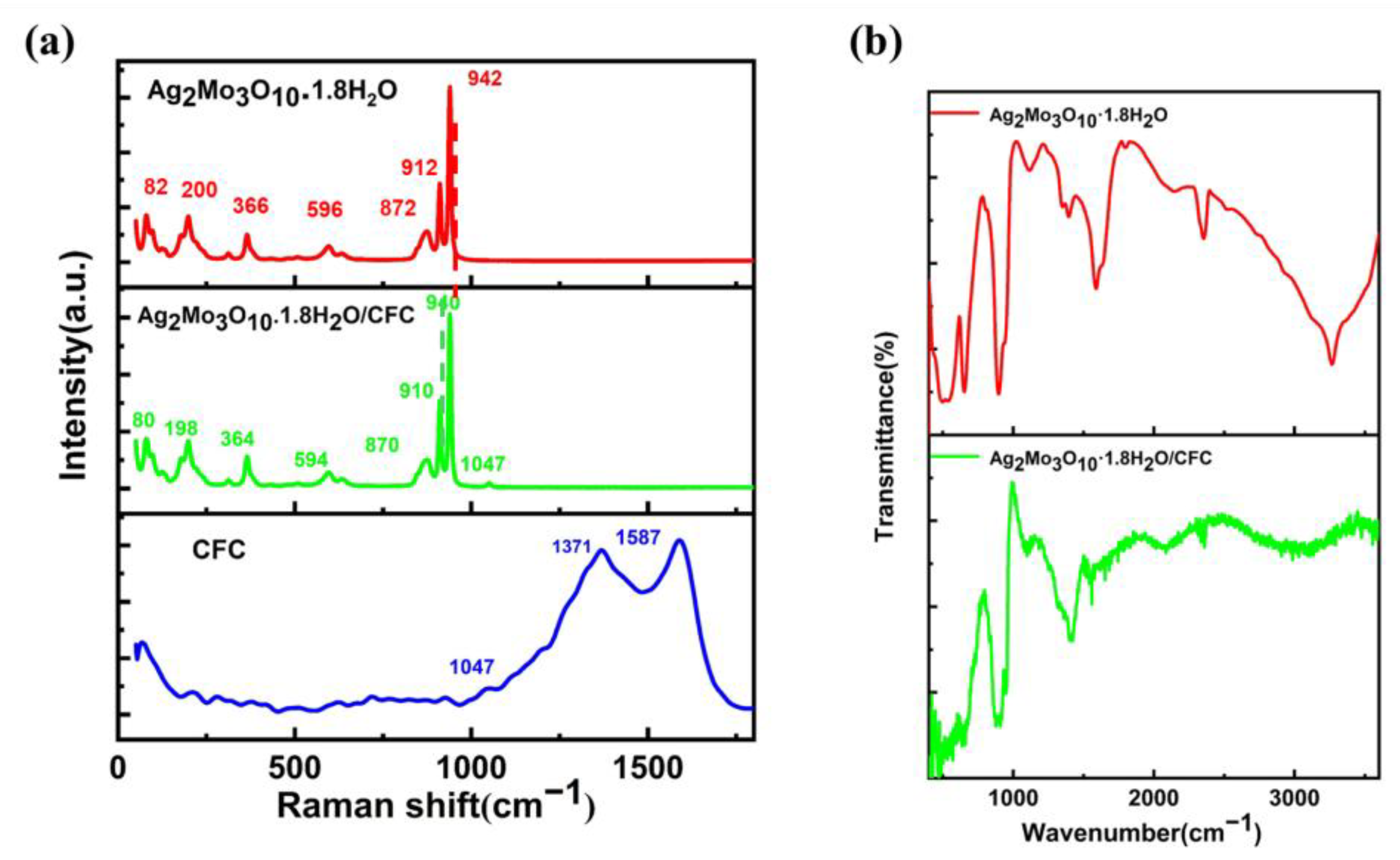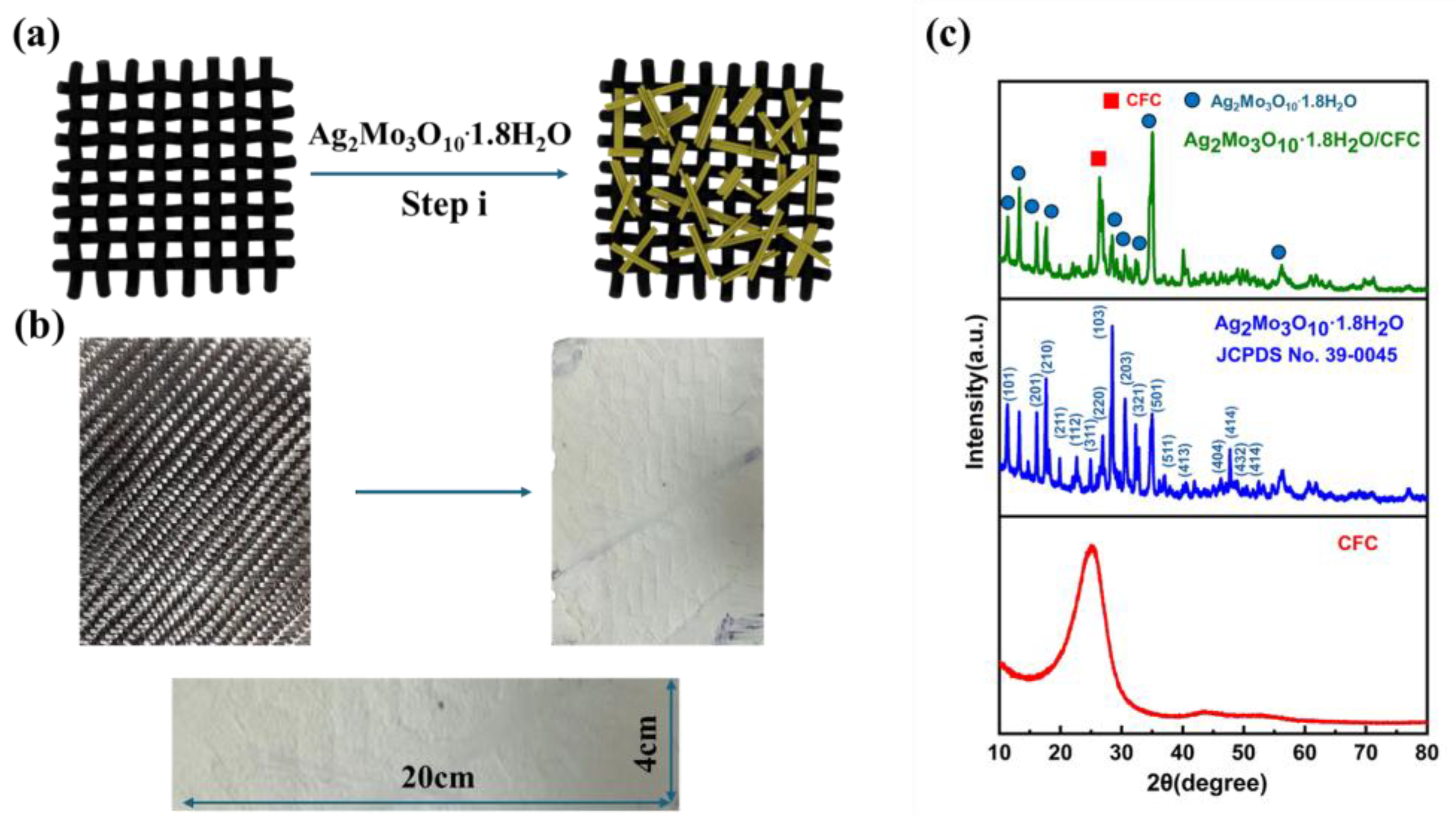2.2. Preparation of the Ag2Mo3O10·1.8H2O/CFC Hybrid Framework