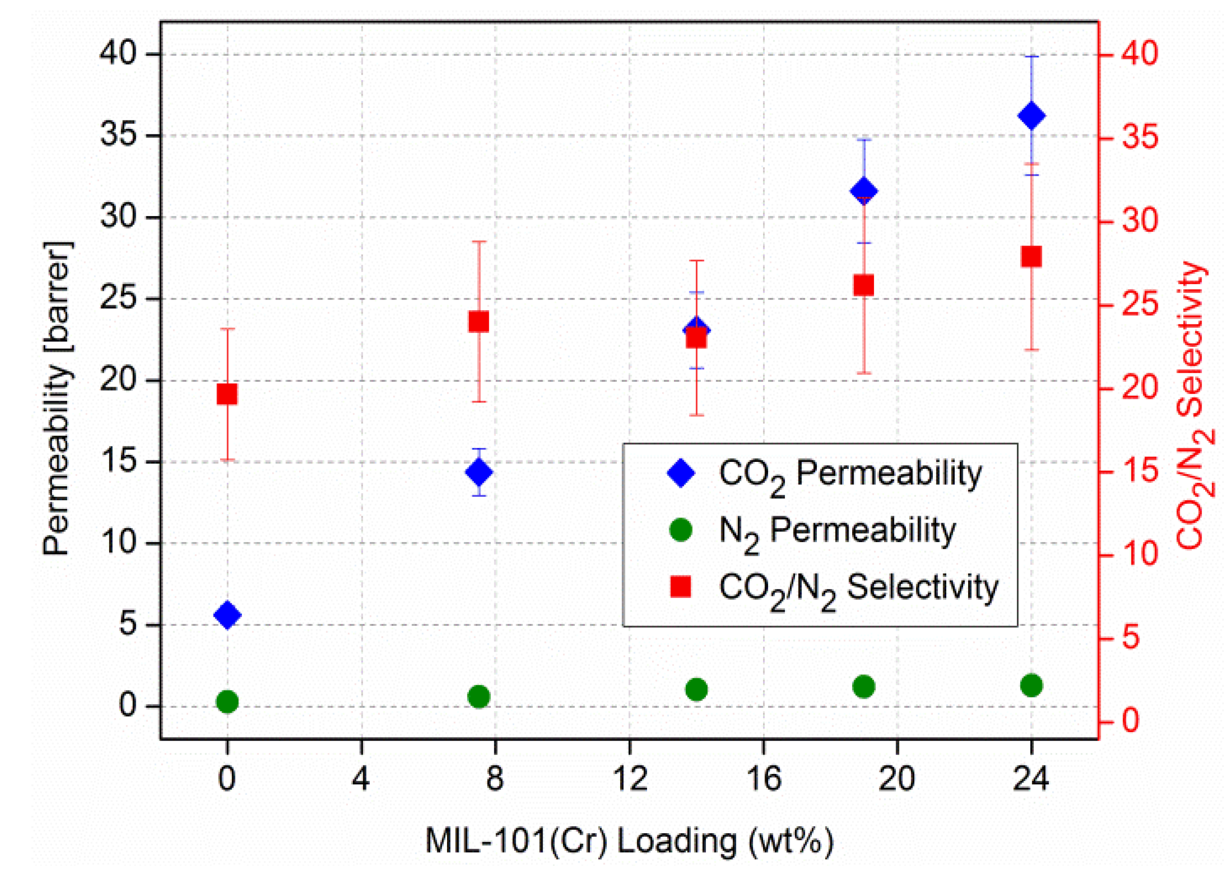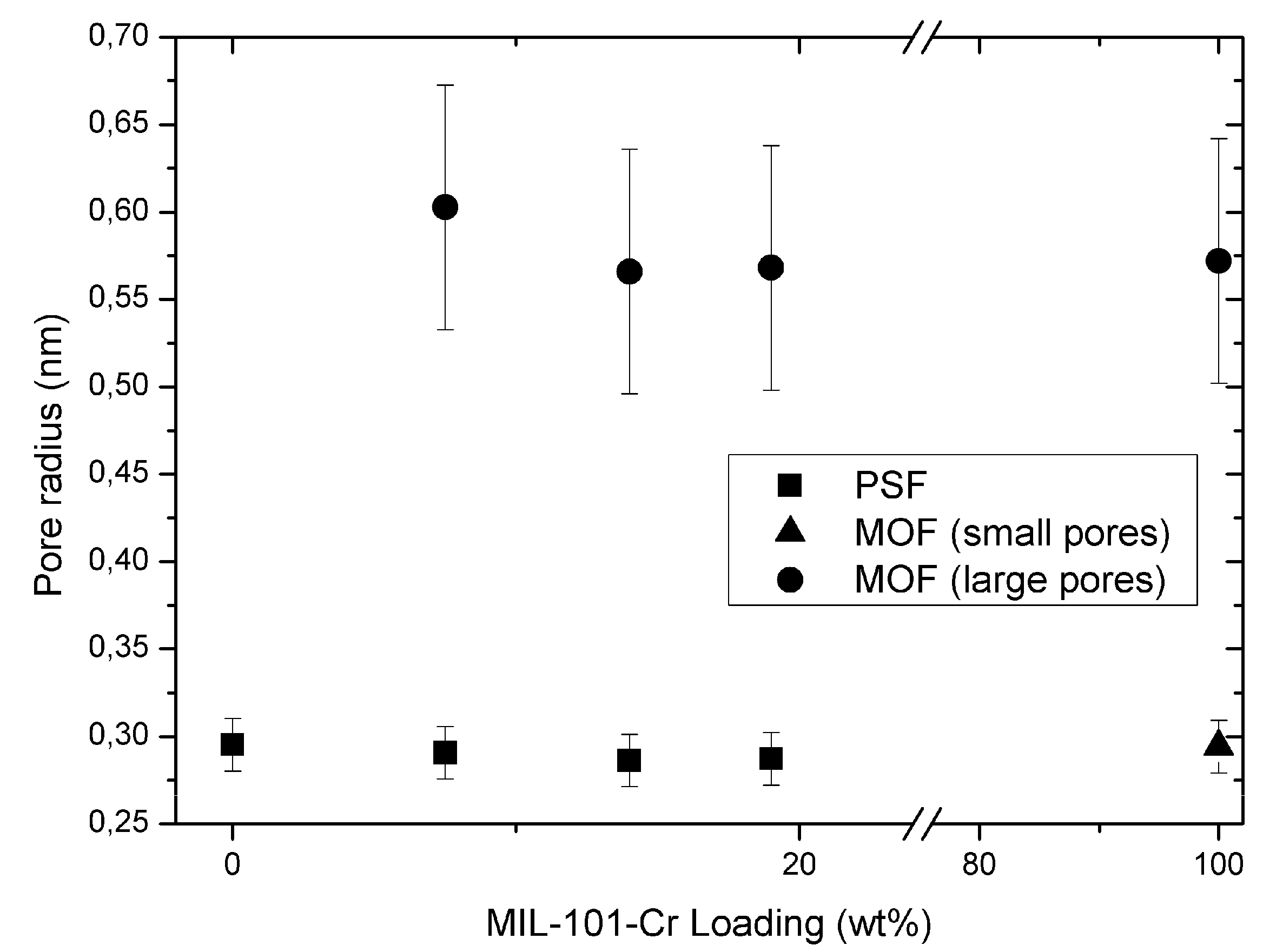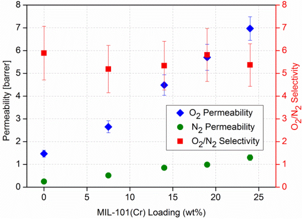 - MIL-101 mass fractions in the MMM had been erroneously calculated somewhat too high in reference [85]. Instead of 8, 16 and 24 wt % the correct mass fractions are 7.5, 14 and 19 wt %, respectively for MIL-101 in PSF. This recalculation does not change the conclusions drawn in reference [85]. To the contrary, the increase in permeability is already achieved with even lower MIL-101 mass fractions.