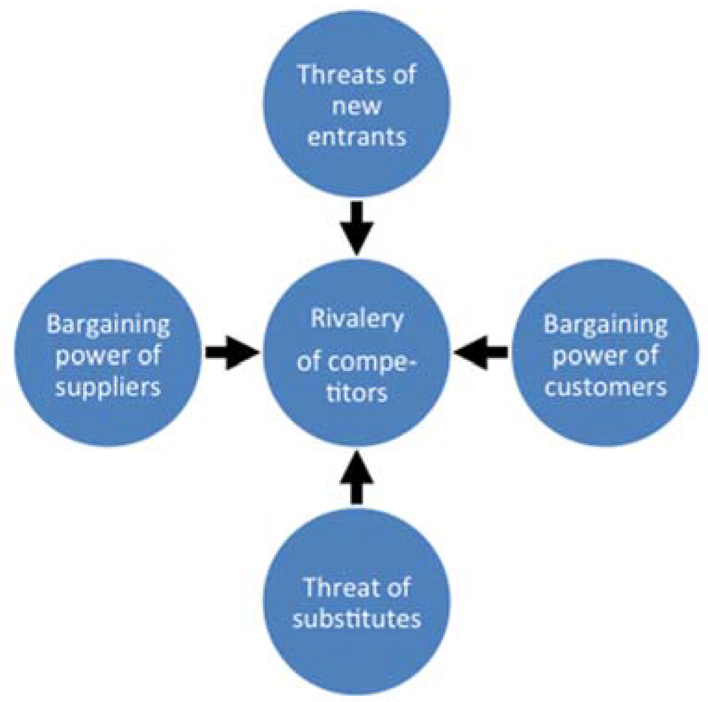 - Porter, M.E. How competitive forces shape strategy. Harv. Bus. Review 1979, 57, 137–145. [Google Scholar]