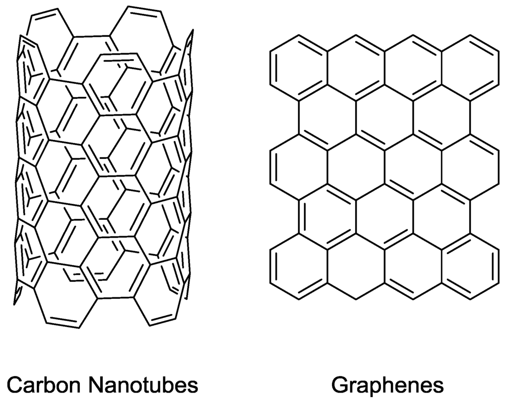 Carbon nanotubes (CNTs) are a novel form of carbon, which are essentially cylinders of graphene sheets (Figure 5). They have many potential applications in electronics and materials chemistry due to having high strength as well as being highly conducting [50]. Single-walled carbon nanotubes (SWCNTs) consist of a single sheet of graphene rolled into a cylinder and multi-walled carbon nanotubes (MWCNTs) consist of concentric CNTs within each other [50]. It is easy to see how CNTs can be applied toward separation applications due to their uniform channels which can be formed at various sizes and are structurally stable. Therefore, they have found a great number of applications within MMMs [51].