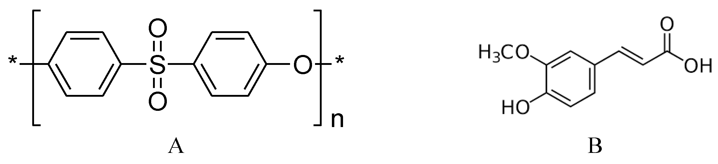 Molecular structure of (A) PES and (B) ferulic acid.