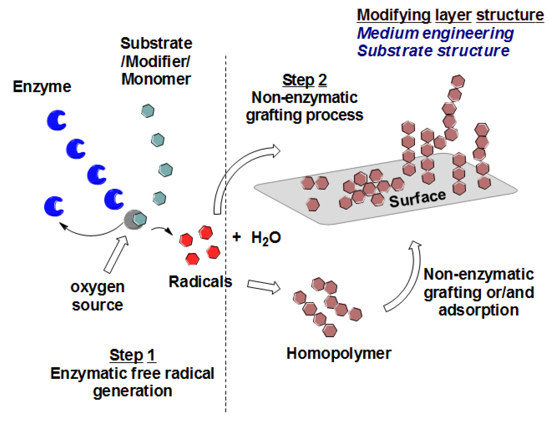 Schematic representation of enzyme-catalyzed modification of PES surfaces.