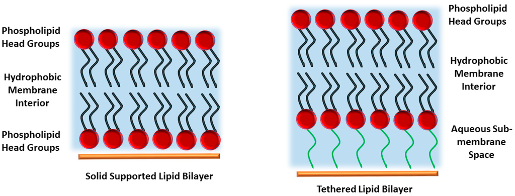 Among the different model systems, sBLMs and tethered bilayer lipid membranes (tBLMs) have attracted significant interest because they offer a relatively stable platform and are accessible to a wide range of analytical techniques, which gives the potential for them to be used in a wide variety of applications.