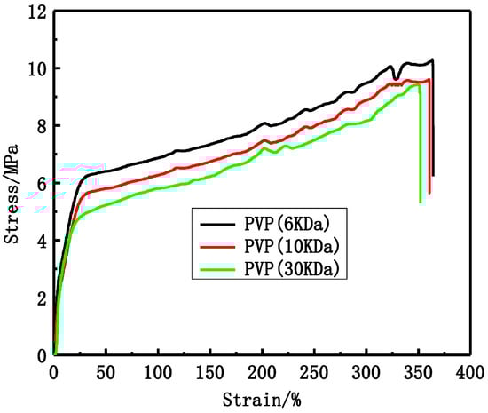 The stress-strain curves of different PVP molecular weight PVDF membranes.