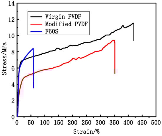The PVDF and Fresenius F60S membranes stress-strain curve.