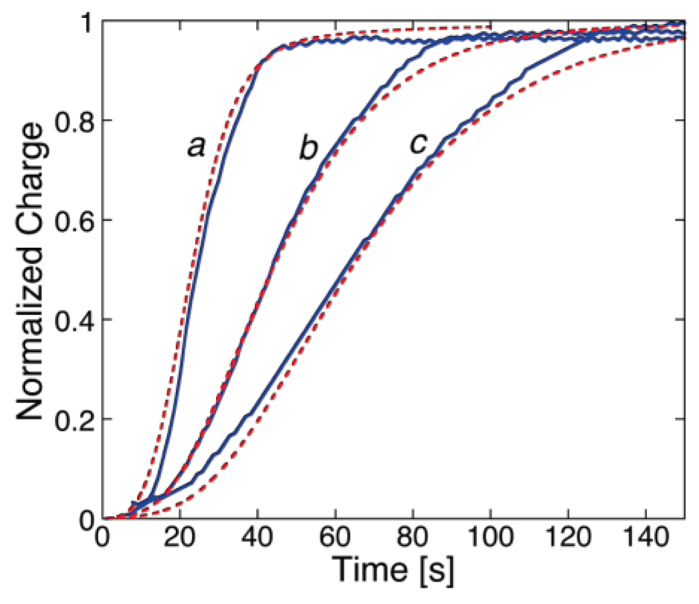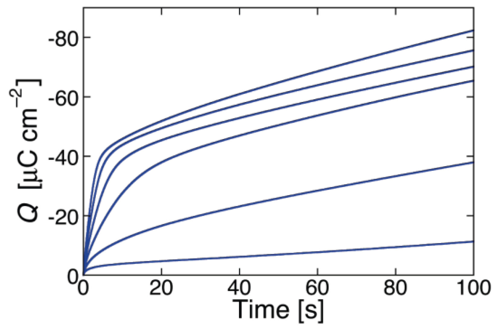 trans side (i.e., “trans-positive” values) to equal and opposite trans-negative values, and plotting the rate of change of the current with time as measured just before and after each voltage step against