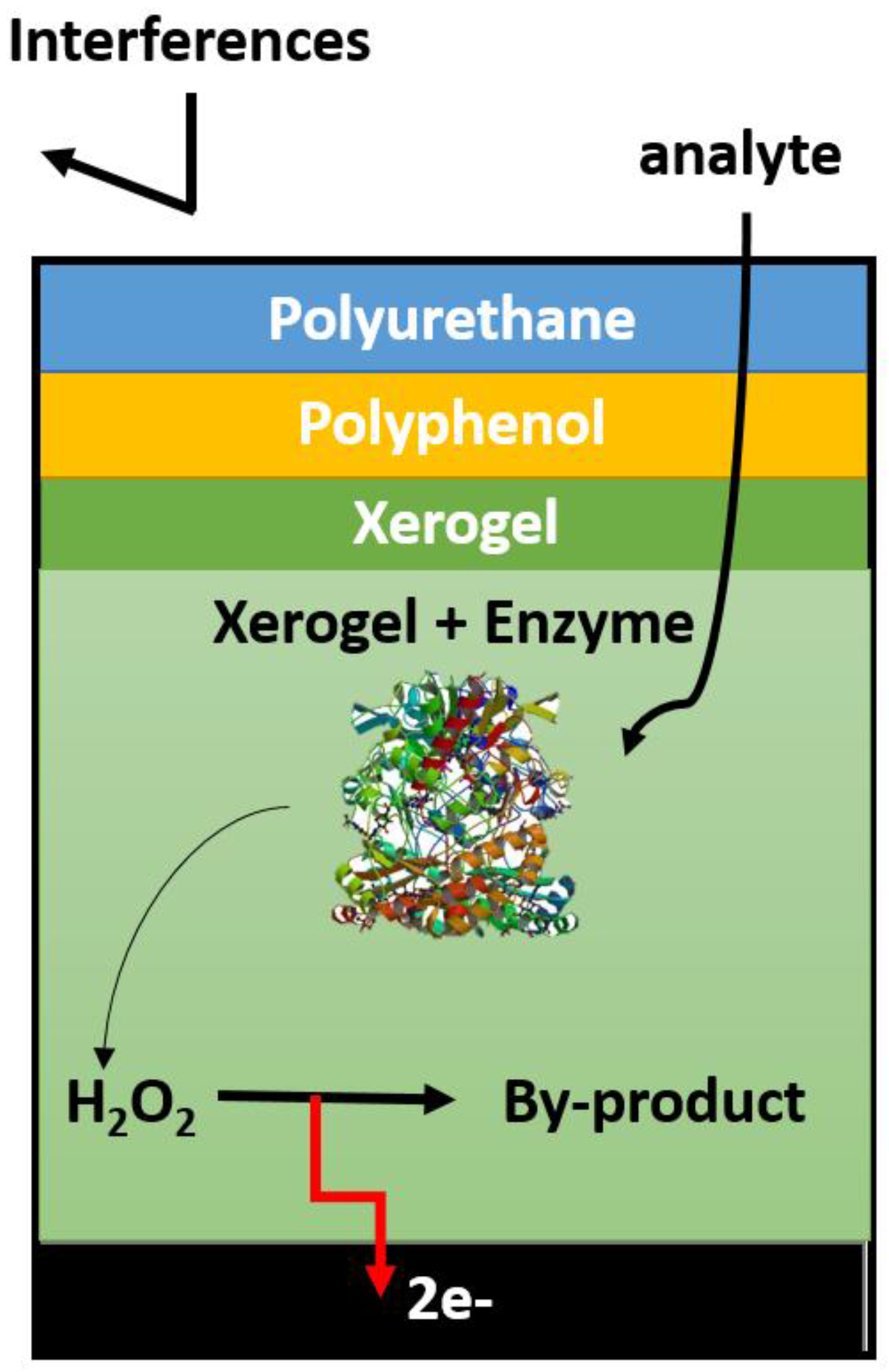 - Poulos, N.G.; Hall, J.R.; Leopold, M.C. Functional Layer-By-Layer design of xerogel-based first-generation amperometric glucose biosensors. Langmuir 2015, 31, 1547–1555. [Google Scholar] [CrossRef] [PubMed]