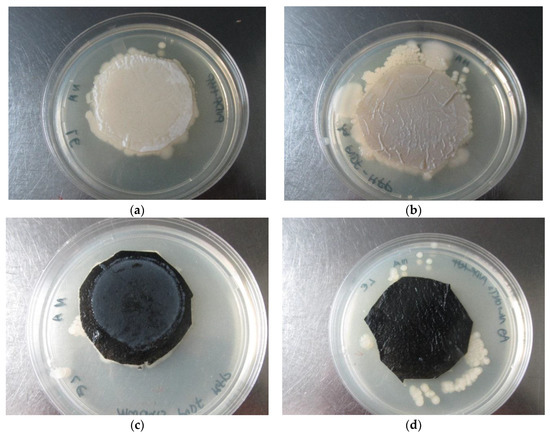 Evaluation of antibacterial activity of (a) PVDF-HFP, (b) Ag/PVDF-HFP, (c) MWCNTs-PVDF-HFP (d) Ag-MWCNTs-PVDF-HFP.