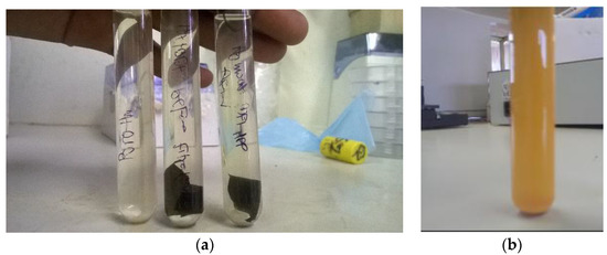 The antibacterial activity of Ag-MWCNTs/PVDF-HFP membrane was further confirmed by incubating the membrane in nutrient broth for 24 h (Figure 10). No growth was observed as indicated by non-turbid broth media in the test sample (Figure 10a), while growth was observed as cloudiness in the reference sample containing E. coli bacteria (Figure 10b).