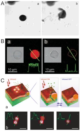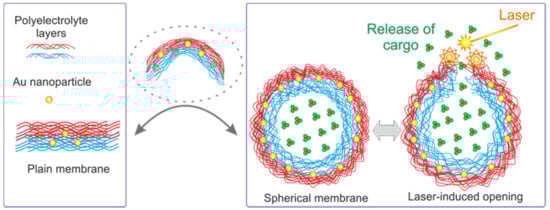 - Skirtach, A.G.; Antipov, A.A.; Shchukin, D.G.; Sukhorukov, G.B. Remote activation of capsules containing Ag nanoparticles and IR dye by laser light. Langmuir 2004, 20, 6988–6992. [Google Scholar] [CrossRef] [PubMed]