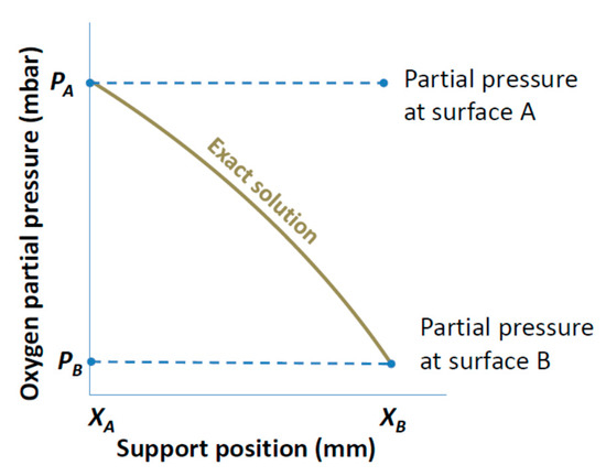 The total and the partial pressures are considered to vary through the position X along the support thickness. The exact solution gives a more realistic description of the transport through the porous support. The single and mixed gas equations for the exact solution of the BFM (Equations (6) and (7)) are:
