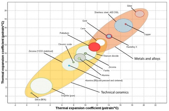 Anyway, one of the most important factor to be considered is the compatibility between the different components of the supported membrane. Figure 3 shows the thermal expansion coefficient for some of the materials most frequently used as intermediate layer, besides common metal support raw materials (316L stainless-steel or Hastelloy X) and selective layer constituents (mainly palladium, silver, copper and gold).