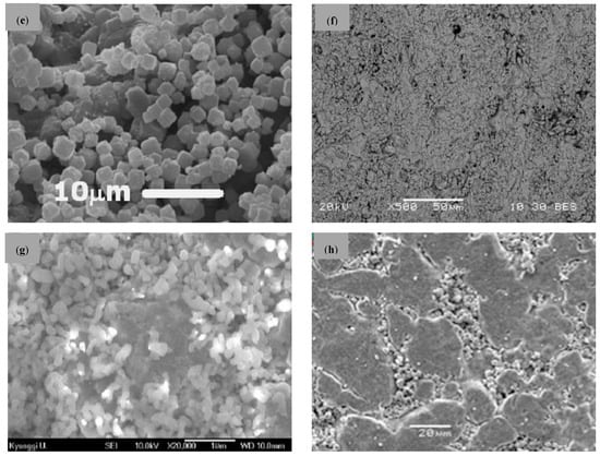 Porous stainless-steel supports before (a); and after the incorporation of different materials as intermediate layer: mixed oxides by calcination in air (b); alumina (c); amorphous silica (d); zeolite (e); zirconia (f); ceria (g); and tungsten (h). Figure adapted from originals published in [,,,,,,], with permission from © Elsevier.