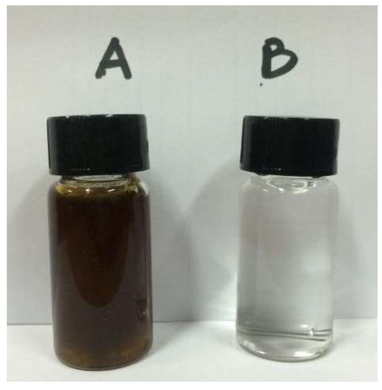 Images of original organic fertilizer sample (A) and MD permeate sample (B).
