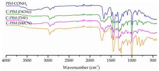 Solubility comparison of PIM-1, PIM-CONH2 and C-PIM in organic solvents.