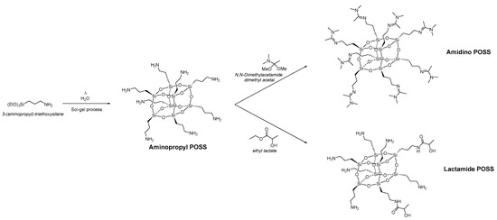 Figure 1. Synthesis of Amidino POSS® and Lactamide POSS®, respectively.