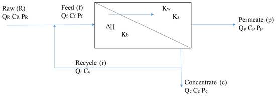 • Subscripts f, c, p = feed, concentrate, permeate.
