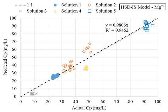 Figure 8. Predicted versus actual magnesium permeate concentration using HSD-IS model.