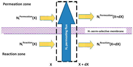 Most of the modelling approaches about MRs belong to the tubular ones, because they represent the majority of the scientific studies present in the open literature and the most abundant in industrial applications. The mass balance for each MR side is related to a differential volume of length dX (Figure 4). Commonly, it is assumed that the compositions, temperature, and pressure vary along the axial direction without axial diffusion. In these conditions, the plug flow assumption is hence acceptable. 1-D models are the most common type for simulating a reaction process in MRs.