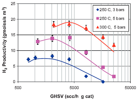 - Iulianelli, A.; Longo, T.; Basile, A. Methanol steam reforming in a dense Pd-Ag membrane reactor: The pressure and WHSV effects on CO-free H2 production. J. Membr. Sci. 2008, 323, 235–240. [Google Scholar] [CrossRef]