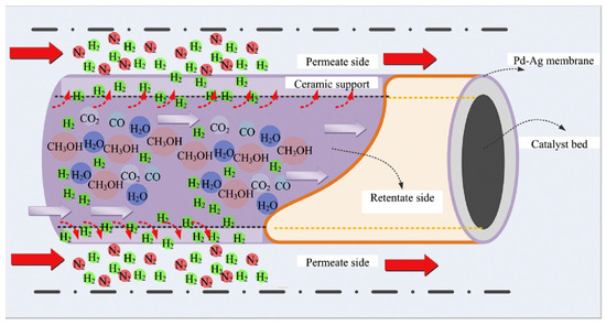 In the last two decades, a growing interest towards the environment protection was noticed and more attention was gained by the research on renewable, alternative, and clean energy sources. In particular, fuel cells (FCs) were proposed as a viable option to the conventional processes for power production and to limit the greenhouse gases (GHGs) as well. Among various kinds of FCs, the polymer electrolyte membrane fuel cells (PEMFCs) are supplied by high grade hydrogen, which is industrially produced as a hydrogen-rich stream mainly via steam reforming of natural gas in fixed bed reformers (FBRs) [1]. Consequently, the hydrogen stream that is useful for PEMFCs supplying needs purification after the reforming process, which is conventionally realized in second stage processes, such as water gas shift (WGS) reactors (constituted of a high temperature reactor followed by a second low temperature reactor), partial oxidation (PROX) reactor, and pressure swing adsorption (PSA) [2]. Hence, the conventional process realizes the hydrogen purification with high costs and the need of various devices. As alternative candidates to the aforementioned conventional systems, inorganic membrane reactors (MRs) received much attention in the last 30 years because they combine the reforming reaction for hydrogen generation and its separation/purification in a single device [3,4]. In detail, among several inorganic membrane materials to be used in MR applications, a consistent literature was devoted on the development and utilization of palladium and/or palladium-alloyed membranes, which played a relevant role in this specific scientific field since palladium possesses the singular peculiarity of high hydrogen solubility and perm-selectivity with respect to all of the other gases [5,6,7,8,9,10,11].