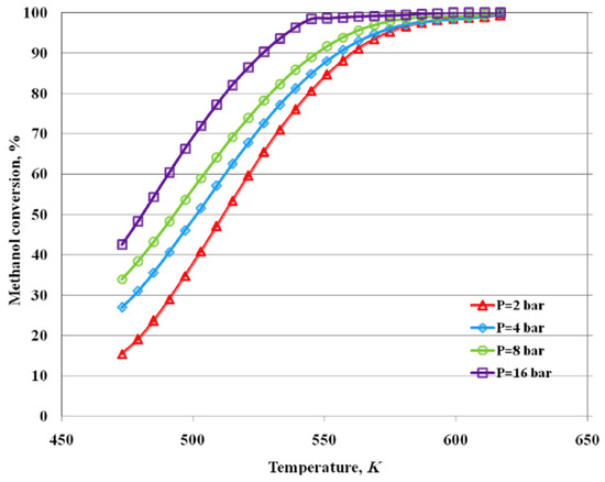 The feed gas flows into the annular side (reformer) packed with a catalyst and the hydrogen permeates through the membrane. The unreacted gases flow into the oxidized zone and are mixed with air. As far as the modelling aspects are concerned, both mass and energy balances were evaluated simultaneously in annular and oxidation zones, as well as in the permeation side. The simulations pointed out that an increase of hydrogen volumetric flow rate in the permeation side produces an enhancement of hydrogen permeation rate across the membrane. Therefore, Fu and Wu established that an optimum ratio between radial (permeation) and axial (annulus) velocity is close to 10. Furthermore, for a specific Damköhler number, the higher the temperature the higher the hydrogen production, whereas methanol conversion and hydrogen recovery yield (defined as the percentage of pure hydrogen collected from the total hydrogen generation) are decreased. These authors also compared the performance of the aforementioned double-jacketed MR with an auto-thermal conventional reactor in terms of methanol conversion, hydrogen recovery, yield, and production rate. The simulations showed that, at the same operating conditions and for a definite reactor volume as well, a higher methanol conversion is reached by using the double-jacketed MR, Figure 8.