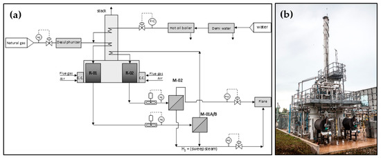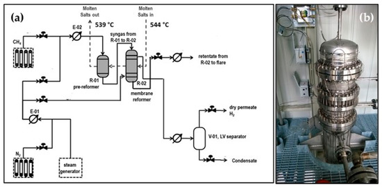 Pure hydrogen production membrane reactor in open architecture (a) Process scheme; (b) Bird-eye view.