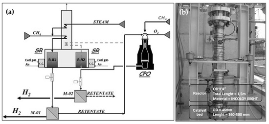 Syngas/pure hydrogen production membrane reactor for gas-to-liquid (GTL) process (a) Process scheme; (b) Catalytic partial oxidation (CPO) reactor assembly.