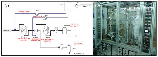 Propylene production membrane reactor (a) Process scheme; (b) Pilot unit assembly.