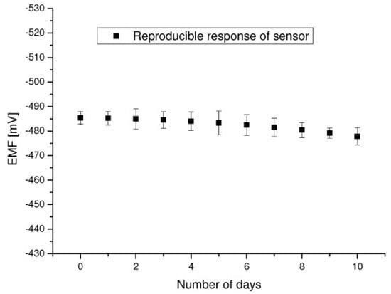 Switching to stabilized polymeric lipid films on graphene nanosheets, ganglioside GM1 has given better results, i.e., response time of ca. 5 min, and detection limits of 1 nM [23]. The proposed device is constructed easily and shows excellent reproducibility, reusability, selectivity, long shelf life, and sensitivity. The slope of the electrode is 60 mV/decade of toxin concentration as shown in Figure 7. The method was evaluated, implemented, and validated in lake water samples.