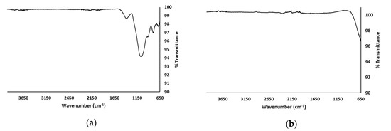 Fourier Transform Infrared (FT-IR) spectrum of the: (a) sintered glass substrate and; (b) P25 powder.