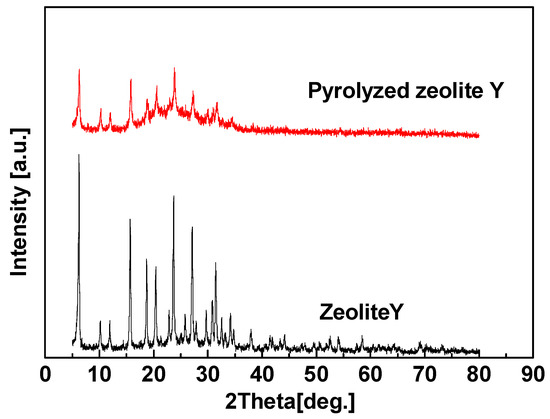 XRD patterns of Zeolite Y and Zeolite Y pyrolyzed at 800 °C [59].