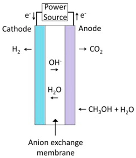 - Take, T.; Tsurutani, K.; Umeda, M. Hydrogen production by methanol-water solution electrolysis. J. Power Sources 2007, 164, 9–16. [Google Scholar] [CrossRef]