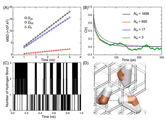 - Luzar, A. Resolving the Hydrogen Bond Dynamics Conundrum. J. Chem. Phys. 2000, 113, 10663–10675. [Google Scholar] [CrossRef]