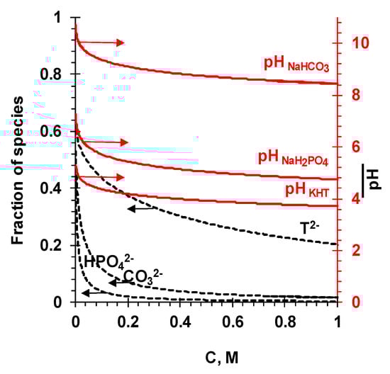 The main difference of NaHCO3, NaH2PO4, and KHT from NaCl is that these electrolytes contain acid anions that go into protonation/deprotonation chemical reactions with water. Supplementary material presents protonation/deprotonation reactions, the negative logarithms of the equilibrium constants of these reactions (pK), as well as the distribution of molar fractions of the carbonic, phosphoric, and tartaric acid species depending on pH, which are calculated using these constants.