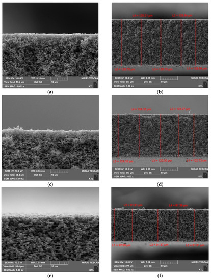 where , , are the initial membrane thickness, the uncompacted membrane thickness, and the compaction coefficient. is the pressure drop across the membrane. The thickness of membranes can be directly measured using techniques such as a SEM.