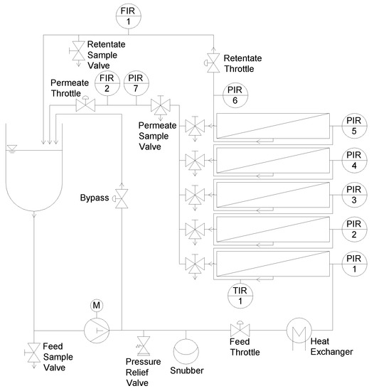 Figure 1 shows a simplified piping and instrumentation (P&I) flow chart of the pilot plant used to investigate the SWMs. Details are described elsewhere [46].